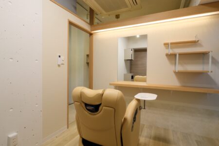 YOHAK大橋店は現在工事中のicoi七隈店と同じ、福岡を中心に美容室を十数店舗展開している株式会社rakの新店舗です。全室個室のサロンでお客様のプライバシーが保たれるうえに、移動シャンプー機を導入していることで従来の美容室のようにセットブースからシャンプーブースへの移動がなく、座り心地の良い理容イスの楽さと個室という特別感も相まって、とてもリラックス出来ると好評のようです。